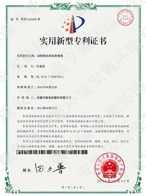 安徽環瑞單項恒功率電伴熱帶國家專利產品簡介